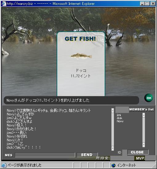───────────────────────────── 「緊急告知!釣果1500匹目を当てろ!」 結果発表ッス。 ドッコ強し!(゜Д゜) んで会長が大当たり!おめでとうございます! 以下の商品を会長が総取り! 私:火打ち石、赤魔石、青魔石、鉄鉱、鉄板、銀鉱、金鉱、 ゼット石、エメラル石、リィエル鉱、黒魔石、鉄のくさび 実験さん:火蛍草の粉 会長:マダラキラント、赤キラント 姐さん:バレル鉱、バレル鉱、バレル鉱 皆様ありがとうございました。 ま、昨日の今日だったので参加者は3人でしたね(;-_-) 実験さんは諸事情により、ポストでの場外参加。 全員ハズレの時とか、使用した竿・エサの無明記などなど 色々不手際がありましたが、これは次回への教訓としたいと思っちょるです。 あと、開催日時が短すぎw( ´)y-~ 次は釣果2000でするです。 今度は1週間~2,3日の猶予を持たそうウンそうしよう。 ではまた次回に(´ー`)ノシ ───────────────────────────── ちなみに次回からは場外参加も・・・と考えているです。 ポストに参加商品とコメに魚を明記するればオケ。 全員ハズレ時は私が総取り(笑) 使用竿はたぶん変わってなくてカーボン。 エサは範囲が広がるネリダンゴ(←今まではALLミミズ) こんな感じかな。 ───────────────────────────── コメント返し。 ですねー。気が付けば釣果1500。もうここまで来ましたか。 つーか自分でも良くやりますわw でももうそろそろ達人辺りが欲しいんですよねぇ。 でもIPが・・・(;´Д`) その内、IPを鍛冶生産依頼するか、IPを買うしかないなこりゃ。 PR